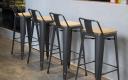 Hoge uitvoering van de iconische Bistro barstoelen van Bolero. De stoelen hebben hetzelfde, kenmerkende stalen frame, in combinatie met een zeer stijlvolle en duurzame essenhouten zitting. Dit zorgt voor een industriële, minimalistische uitstraling die perfect aansluit bij stijlbewuste cafés, lunchrooms en bars. Het gegalvaniseerd stalen frame is zeer sterk en dankzij de niet-strepende rubberen voetjes worden uw vloeren beschermd tegen krassen en schade wanneer de stoelen verschoven worden.