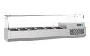 De gekoelde opzetvitrine is voor het bewaren van ingrediënten in gastronormbakken. Dit is bijvoorbeeld handig voor horecaondernemers die zich bezighouden met het verkopen van etenswaren als belegde broodjes, Door voor het opslaan en koelen van broodbeleg glazen opzetvitrines te gebruiken, kunnen de gasten in de betreffende horecazaak namelijk direct zien uit welke soorten broodbeleg men kan kiezen bij het kopen van een belegd broodje. De opzetvitrine is standaard voorzien van een glasopstand. De temperatuur is digitaal instelbaar. Wordt geleverd zonder GN-Bakken