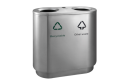 Recycling afvalbak van mat RVS met Fingerprint Proof coating. Voorzien van dubbele open inworpopening en metalen binnenemmers voor afvalscheiding.