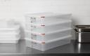 Luchtdichte, gastronorm voedseldozen met deksel. De dozen worden geleverd met 4 kleurcode clips (rood, geel, groen en blauw) en zijn voorzien van een permanent, eenvoudig schoon te vegen label zodat de inhoud gemakkelijk te identificeren is. Te gebruiken in een voedsel roulatiesysteem. Geschikt voor temperaturen van -40°C tot +95°C en ideaal voor in de professionele keuken. Magnetron- en vaatwasserbestendig.