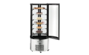 Kunststof behuizing met veiligsheidglas rondom, luchtgekoeld met 1 ventilator, 6 in de hoogte verstelbare draaibare glasplaten met een diameter van 530 mm, tussenschappen is uitneembaar, de deur is rechtsdraaiend, 5 bokwielen waarvan 2 geremd.