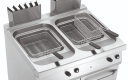 Gas friteuse, voorzien van piëzo ontsteking, aardgas H mondstukken voor vloeibaar gas en aardgas L zijn bijgevoegd, bak met grote koudezone . Wordt compleet met frituurmandjes geleverd. Verstelbare poten.