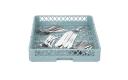 Deze korven bieden de juiste oplossing voor al uw vaat. Verkleinen de kans op breuk en zijn ruimtebesparend. Door de extra grote maaswijdte wordt een optimaal was en droog resultaat behaald. Deze vaatwaskorf voor bestek heeft een opengewerkte bodem en is dus perfect voor in de vaatwasser en om bestek te laten weken in een wasbak. Bestek wordt snel schoon en droog in deze korf en is daarom perfect voor drukke keukens in cafés, restaurants en hotels.