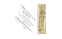 - Het gestroomlijnde witte papieren bestek van Vegware is een perfecte optie voor diegenen die op zoek zijn naar een alternatief voor CPLA of houten opties.