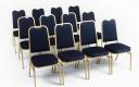 Slim, stevig en stapelbaar - deze praktische stoelen zijn ideaal voor iedere horecazaak. De slijtvaste polyester stoffering weerstaat beschadigingen, hoeveel gasten u ook ontvangt, terwijl de gewatteerde zitting en rugleuning voor extra comfort zorgen. De blauwe pluche afwerking en het stijlvolle gouden frame geven het geheel een luxueuze touch, waardoor ze ideaal zijn voor conferenties en evenementen die voor meer stijl gaan.