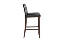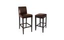 Stijlvolle hoge barkruk met rugleuning, donkerbruine kunstlederen bekleding en een stevig berkenhouten frame. Wordt volledig gemonteerd en klaar voor gebruik geleverd.