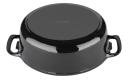 Traditionele, gietijzeren, ovale braadpan met handgrepen aan de zijkanten en een RVS knop op het deksel. Deze pan heeft zeer goede warmhoudeigenschappen en zorgt voor een gelijkmatige warmteverdeling. Deze mooie, zwarte pan is ideaal om vanuit de oven rechtstreeks te serveren aan tafel, voor een mooie presentatie van het gerecht. De deksel heeft een innovatieve vorm waardoor vocht terug in de pan druipt
