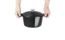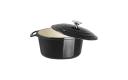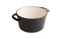 Traditionele, gietijzeren, ronde braadpan met handgrepen aan de zijkanten en een RVS knop op het deksel. Deze pan heeft zeer goede warmhoudeigenschappen en zorgt voor een gelijkmatige warmteverdeling. Deze mooie, zwarte pan is ideaal om vanuit de oven rechtstreeks te serveren aan tafel, voor een mooie presentatie van het gerecht. De deksel heeft een innovatieve vorm waardoor vocht terug in de pan druipt.