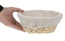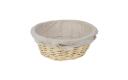 Ronde rieten mand met uitneembare katoenen bekleding met trekkoord. Omdat de bekleding uitneembaar is, kunt u na gebruik de kruimels gemakkelijk weggooien. Ideaal voor het serveren en presenteren van brood en banket.