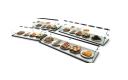 De op 2 niveaus geplaatjes goederen zoals gebak, taarten, chocolaatjes, belegde broodjes of sandwiches kunnen aan beide zijden worden verwijderd.