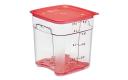 Optimaliseer uw keukenorganisatie met de CamSquares FreshPro 7,6 liter voedselopslagcontainer van Cambro. Gemaakt van duurzaam Camwear biedt deze container een ruimtebesparend ontwerp dankzij de geïntegreerde handgrepen, waardoor hij eenvoudig te stapelen en te vervoeren is. De afgeronde hoeken en het antislip handvat zorgen voor veilig en comfortabel schenken van alle vier de zijden.
