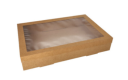 - Catering dozen, karton hoekig 8 cm x 31 cm x 45 cm bruin met apart deksel en kijkvenster