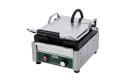 Zeer duurzame, enkele paninigrill van Waring met geribbelde krasbestendige platen, hittebestendige handgrepen en controlelampjes. Daardoor is hij gebruiksvriendelijk en gaat hij lang mee. De grill is ideaal voor het bereiden van bijvoorbeeld panini's, hamburgers, kip en groenten. Hij is compact, maar heeft een hoge output, is snel warm en heeft een instelbare thermostaat.