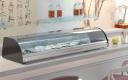 Coreco sushi opzetvitrine met een plaatkoeling en top verdamper, uit en inwendig is de vitrine van RVS AISI304 18/10 de meegeleverde bakken zijn 1/3 x 40 mm hoog.