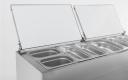 De Combisteel saladette is ideaal voor het bereiden van pizza's, broodjes, wraps of salades, met een ruime opslagcapaciteit om al uw ingrediënten binnen handbereik te houden. Automatische ontdooiing, geschikt voor 2x 1/1 GN + 6x 1/3 GN.