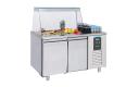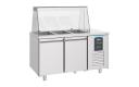 Combisteel 7489.5150 saladette / koelwerkbank type Pro Line met geforceerde koeling, automatische ontdooiing, isolatie 50 mm, vast ingebouwde compressor, inclusief 1 rooster 1/1 GN en geleiderset per deur, rechte glasopzet, geschikt voor 3 1/1 GN inzet, exclusief bakken.