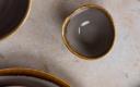 Sausjes met frisse, levendige kleuren worden benadrukt en komen optimaal tot hun recht in deze rustieke dipschaaltjes in een rokerige kleur uit de Olympia-Kiln-serie. De unieke, gespikkelde oppervlakte wordt bereikt door een glazuur, dat reageert met de natuurlijke mineralen in de klei en door de toevallige reacties tijdens het bakken. Elk schaaltje is met de hand afgewerkt en heeft een levenslange garantie op het afsplinteren van de rand.