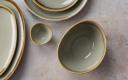 Zachte tinten maken deze dipschaaltjes perferct voor huisgemaakte dips en sauzen. Het kleine formaat is ideaal voor een kleine hoeveelheid dip of saus. Elk schaaltje is uniek en dat ontstaat dankzij het reactieve glazuur dat reageert met de natuurlijke mineralen in de klei en de willekeurige reacties in de oven.