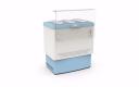 Retro uitgevoerde schepijsvitrine voor ronde bakken, geforceerde uitvoering, model Dolce Vita kleur Baby Blauw.