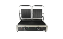 De robuuste dubbele contactgrill heeft een sterke RVS constructie en gietijzeren geribbelde platen waardoor de grill lang meegaat. Ideaal voor het grillen van hamburgers, steaks, pannini's en tosti's