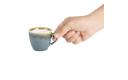 De blauwe kleur van deze espressokopjes is warm en uitnodigend naar uw gasten toe. Het glazuur reageert met de natuurlijke mineralen in de klei wat zorgt voor een onregelmatige afwerking die voor elk kopje uniek is. De rand wordt met de hand bewerkt met een glazuur dat doorzichtig is en licht uitloopt. Dit zorgt nog meer eigenheid en karakter.