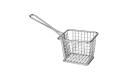 Uniek en eigenzinnig, vierkant, RVS presenteermandje met lange handgreep. Ideaal voor het serveren van kleine bijgerechten zoals frites en tapas. Dit mandje is vaatwasmachinebestendig en voegt net dat unieke toe aan uw onderneming.