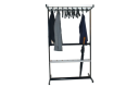 Vrijstaand garderoberek met 38 haken onder de balk, die via beide zijden te benaderen zijn.