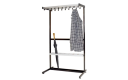 Vrijstaand garderoberek met 19 haken die in een rails onder de balk hangen. Mogelijk om garderoberek tegen de wand te plaatsen.