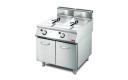 Gas friteuse, voorzien van piëzo ontsteking, thermostatische veiligheidsklep, snelle verhittingstijd middels 2 vlampijpen per bak. Met koude zone, kruimelvanger en aftapkraan. Wordt compleet met frituurmandjes geleverd. Verstelbare poten.