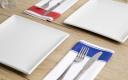 Deze witte servetten zijn gemaakt van 100% katoen en hebben een stijlvolle blauwe band die past bij restaurants in urban stijl. De servetten vormen een mooi contrast met een houten tafelblad en zorgen voor een rustieke en huiselijke sfeer in het restaurant.