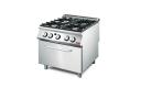 Gaskooktoestel met 4 branders en gasoven, voorzien van thermokoppels, koperen branders, geëmailleerde morspannen en waakvlam. Oven met thermostaat, piëzo ontsteking, waakvlam en uitneembare geleiders. Binnenafmeting oven 53x53x28(h). Standaard uitvoering op aardgas. Verstelbare poten.