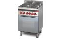 Gastro M elektrisch fornuis met 4 kookplaten 60/60 CFE en heteluchtoven met 6 standen schakelaar en controlelampjes.