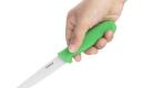 Dit gekartelde groentemes van Hygiplas heeft een lemmet gemaakt van hoogwaardige kwaliteit RVS en een kleurgecodeerd, vaatwasserbestendig heft. Dit mes heeft een groen heft en dat betekent dat het bedoeld is voor het snijden van groente en fruit.
