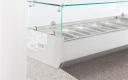 De gekoelde opzetvitrine is voor het bewaren van ingrediënten in gastronormbakken. Dit is bijvoorbeeld handig voor horecaondernemers die zich bezighouden met het verkopen van etenswaren als belegde broodjes, Door voor het opslaan en koelen van broodbeleg glazen opzetvitrines te gebruiken, kunnen de gasten in de betreffende horecazaak namelijk direct zien uit welke soorten broodbeleg men kan kiezen bij het kopen van een belegd broodje. De opzetvitrine is standaard voorzien van een glasopstand. De temperatuur is digitaal instelbaar. Wordt geleverd zonder GN-Bakken
