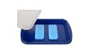 - 1 RVS serveerschaal, 1 kunststof serveerschaal, deksel met handvat en 2 koelers