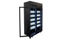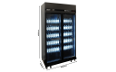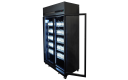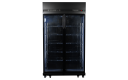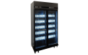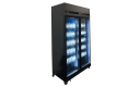 Ontdek onze stijlvolle, zwarte koelkast met dubbele glazen deuren – perfect voor supermarkten en professionele omgevingen!