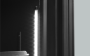Met 5 instelbare zwarte draadplanken, 2 zelfsluitende glazen scharnierdeuren, 2 x ledverlichting in de deurlijst over de hele verticale lengte en een led-verlichte kap.