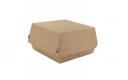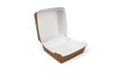 Bruin/wit kartonnen snackbakje geschikt voor het serveren van o.a. hamburgers.
