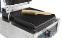 De robuuste contactgrill heeft een sterke RVS constructie en gietijzeren geribbelde platen waardoor de grill lang meegaat. Ideaal voor het grillen van hamburgers, steaks, pannini's en tosti's in horeca gelegenheden.