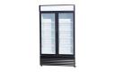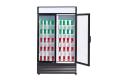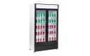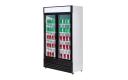 Combisteel glasdeur koelkast met zwarte omlijsting voorzien van 8 roosters, en verlichting.