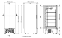 Buitenkant geborsteld CNS 1.4016, Scotch-Brite finish met anti-fingerprint coating, binnenkant CNS 1.4301, dichte deur, magnetische afdichting(en), slot, greepkom, deurscharnier rechts, verwisselbaar, energiezuinige LED verlichting, PUR-hardschuimisolatie tot 90 mm, elektronische besturing, digitaal display, automatische ontdooiing, handmatige ontdooiing.