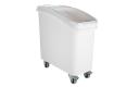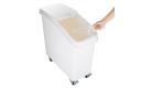 Polypropyleen ingrediëntenbak met transparant schuifdeksel voor eenvoudige toegang. Eenvoudig te verplaatsen dankzij de gemonteerde zwenkwielen. Polycarbonaat schep inbegrepen.