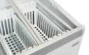 Deze praktische vrieskist met glazen schuifdeksels is ideaal voor winkels, horeca en promotionele toepassingen waar productzichtbaarheid en flexibiliteit centraal staan. Dankzij de eenvoudig instelbare draaiknop schakelt u moeiteloos tussen koelen en vriezen. De heldere LED-verlichting presenteert uw producten optimaal, terwijl de glazen deksels direct zicht bieden op de inhoud. Met een extra royale inhoud van 396 liter, een verrijdbaar ontwerp en een afsluitbare uitvoering combineert de Lotte-396 gebruiksgemak met veiligheid en efficiëntie.