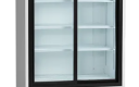 Zwarte 2-deurs displaykoeler met zelfsluitende schuifdeuren