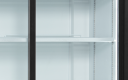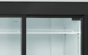 Zwarte 2-deurs displaykoeler met zelfsluitende schuifdeuren