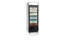 De witte koelkast met glasdeur is ideaal voor het tonen van frisdrank, bier, gebak en desserts.