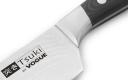 Dit klassieke, Japanse koksmes heeft een VG-10 RVS kern, gehard tot 60° Rockwell rating. Voor uitstekende prestaties en langdurige scherpte. Twee lagen damaststaal bedekken de kern. Een ergonomisch Micarta heft zorgt voor uitstekende grip. Vogue Tsuki messen staan bekend om hun duurzame kwaliteit.
