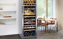 Met plateaus op rails en 3 apart regelbare koelsystemen, instelbaar tussen de +5°C en +20°C. 1 plateau is geschikt om geopende flessen schuin te kunnen bewaren. Capaciteit 178 flessen (Bordeauxformaat).