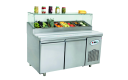 Constructie in RVS 430, marmeren werkblad, geventileerde koeling,1 rooster per deur, automatische ontdooiing, automatische verdamping, zelfsluitende deuren, digitaal controlepaneel, aanpasbare poten.