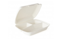 3-vaks menuboxen met klapdeksel zijn smaakneutraal, olie-, vet- en vochtbestendig. Geschikt voor take away maaltijden waarin ruimte is gemaakt om etenswaren van elkaar te scheiden.